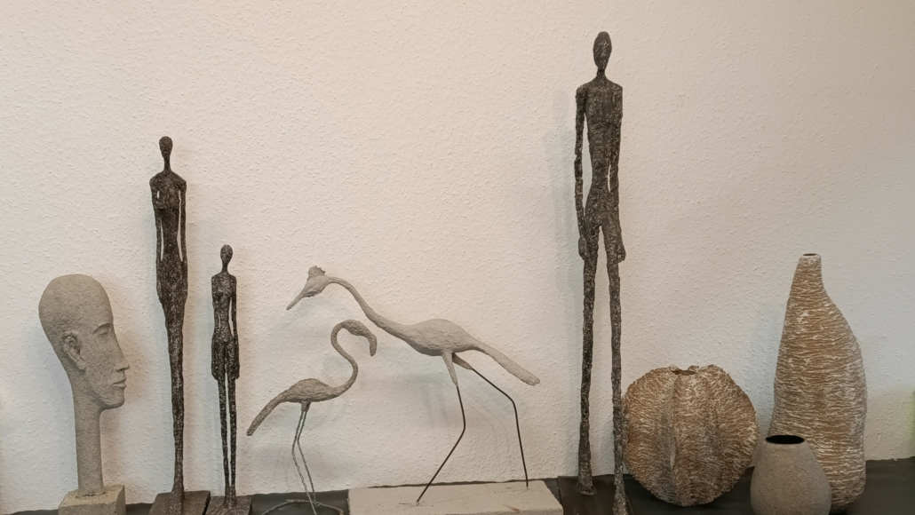 Im Maché-Atelier erkunden wir den Werkstoff Papier auf seine kreative Nutzung: Ob langgestreckte Figuren à la Giacometti, üppige Torsi, eindrucksvolle Charakterköpfe oder Tierfiguren … mit Papier ist alles möglich! Der Ausgangsstoff sind Zeitungen und Kartons, die eingeweicht und mit Kleister püriert, eine leicht zu verarbeitende Modelliermasse ergeben, welche nach der Trocknung erstaunlich stabil wird. Für die 30 – 60 cm großen Objekte wird zuerst ein Armierungsgerüst aus Draht gebogen, worüber die Form dann schichtweise mit Papier-Maché aufgebaut wird. Größere Figuren von 70 – 180 cm benötigen eine stabilere Armierung, welche Sie im Kurs nach Anleitung aus Baustahl schweißen können. Durch den Spachtelauftrag entsteht eine lebendige Oberfläche. Im Kurs erlernen Sie sowohl die Herstellung und Modelliertechnik von Papier-Maché (Pulpe) als auch anatomische Grundlagen der menschlichen Figur.